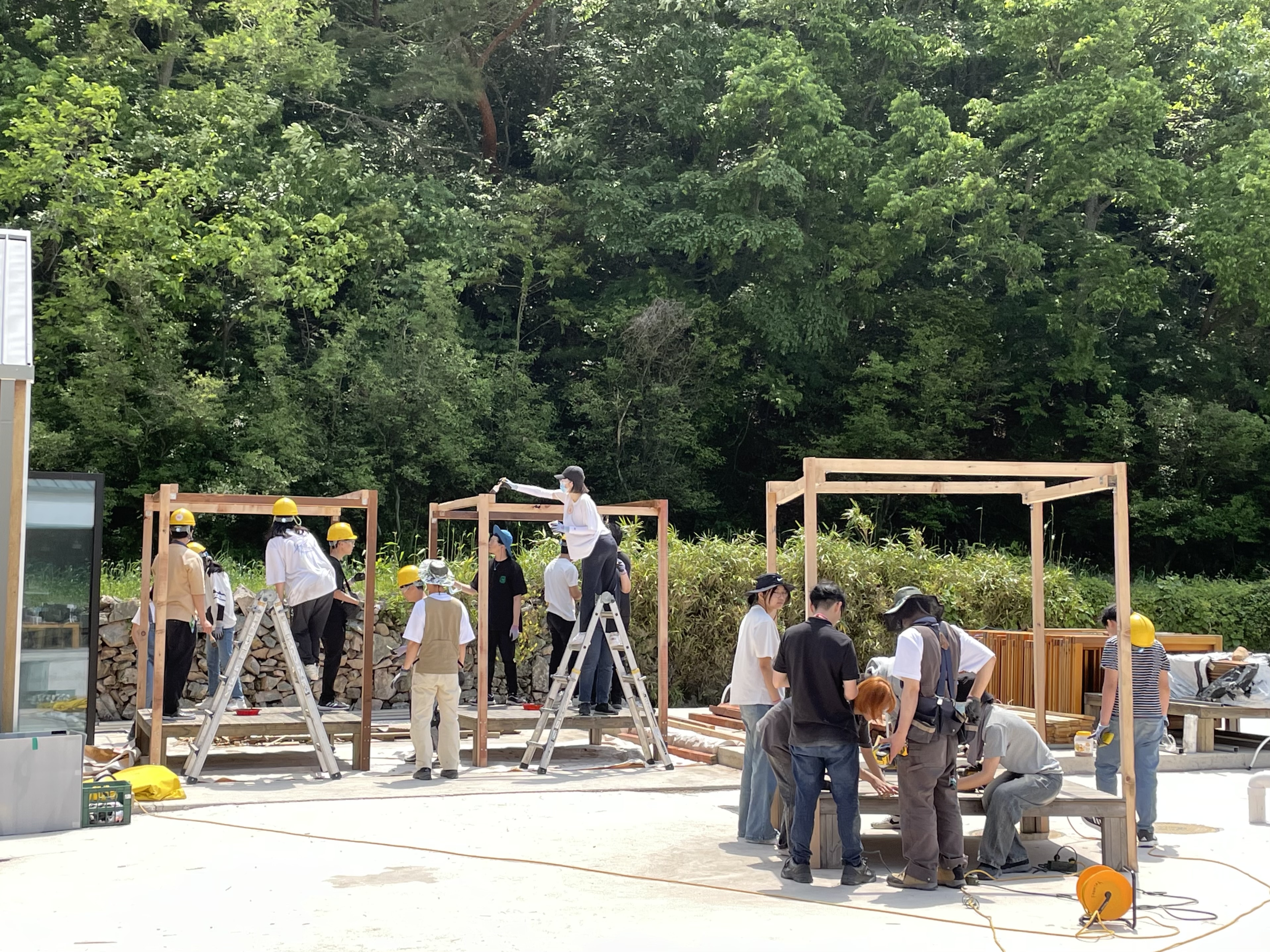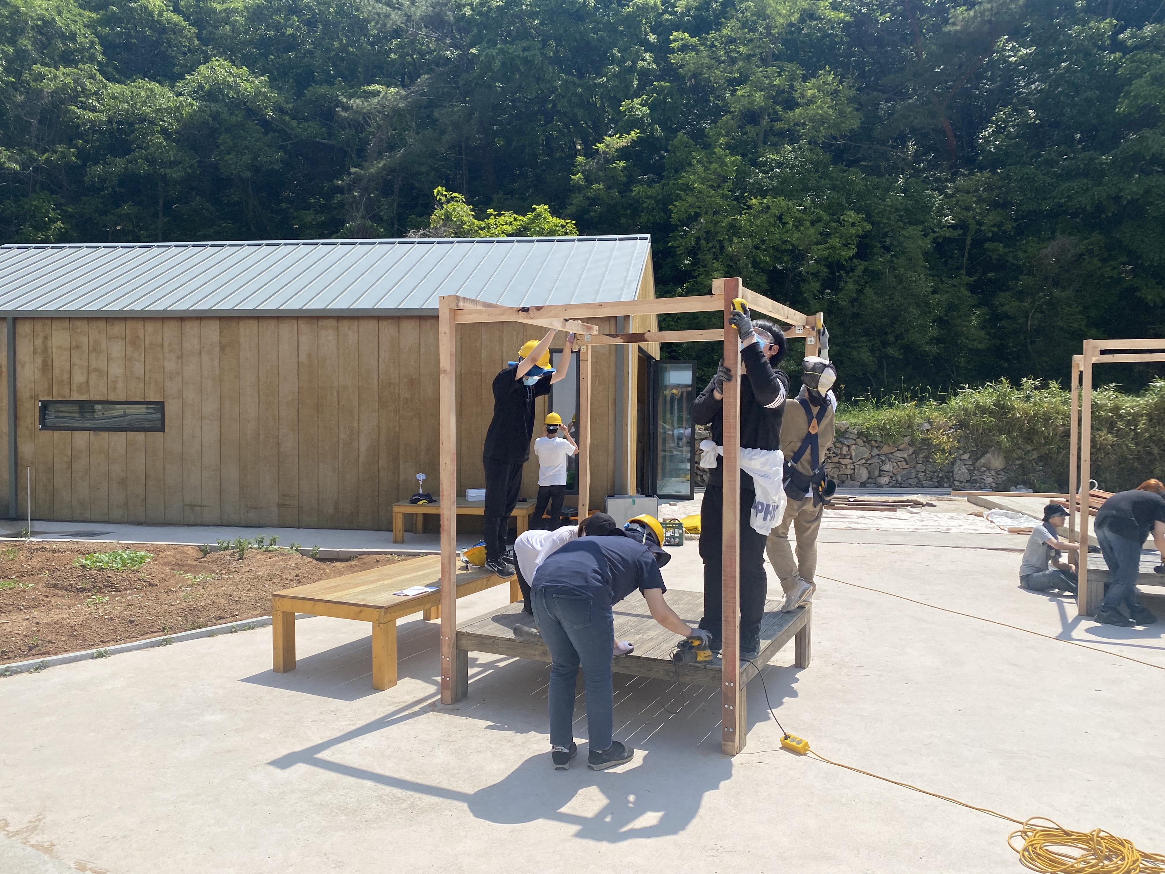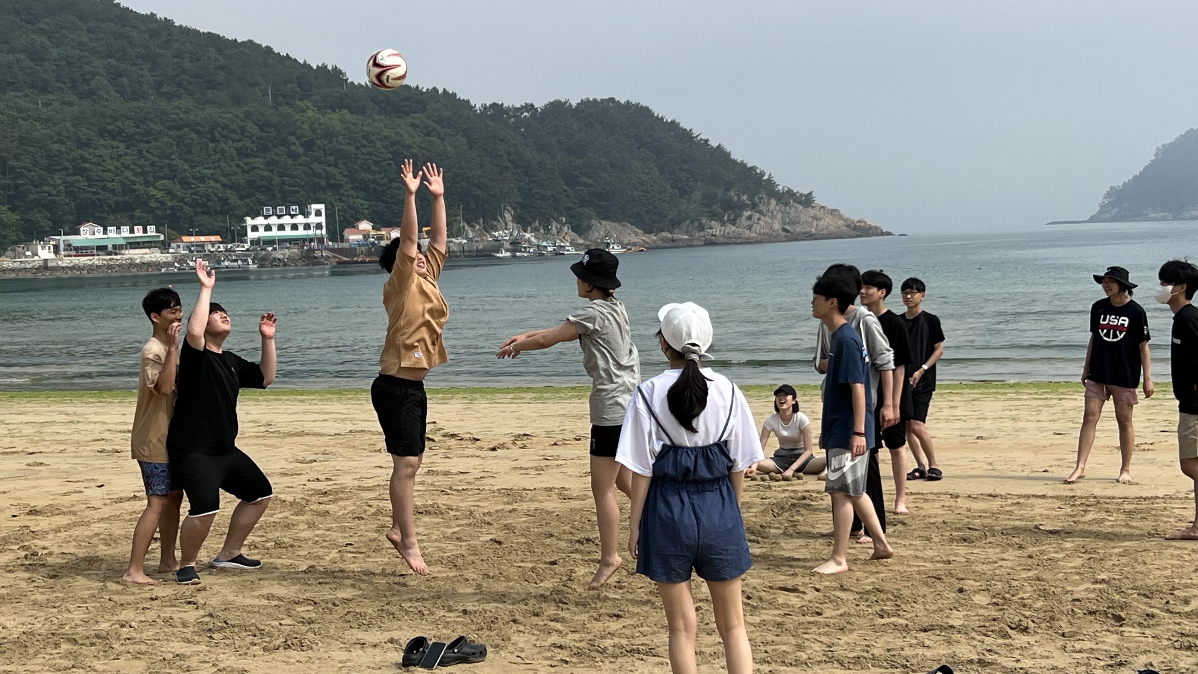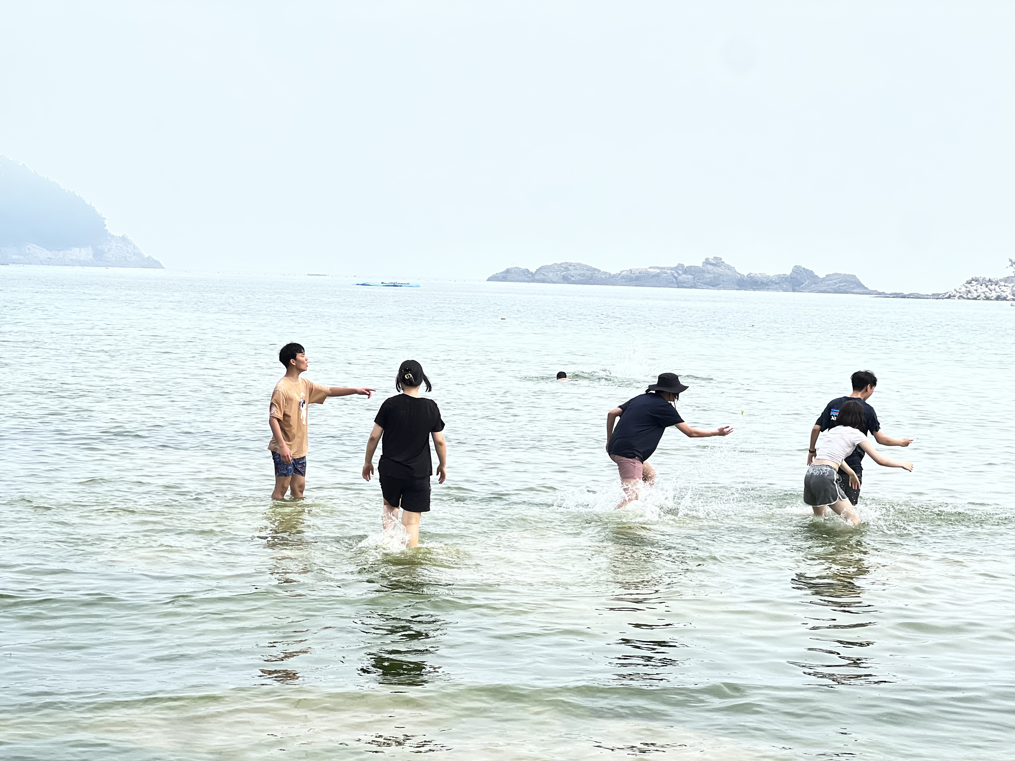 아지트 짓기를 완성하고, 바닷가에 가서 함께 물놀이를 하였습니다.